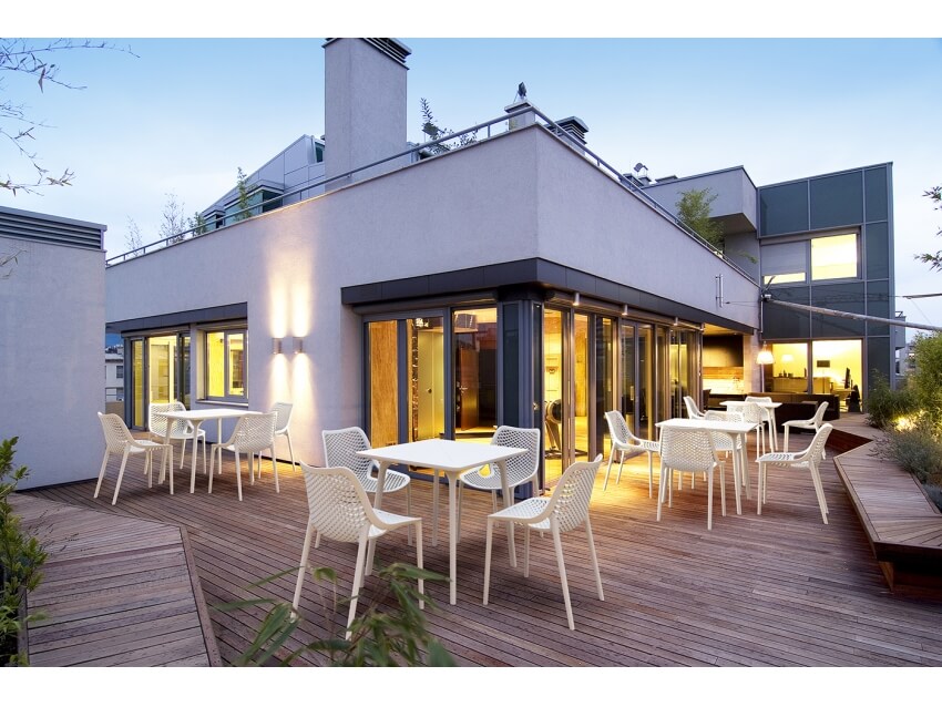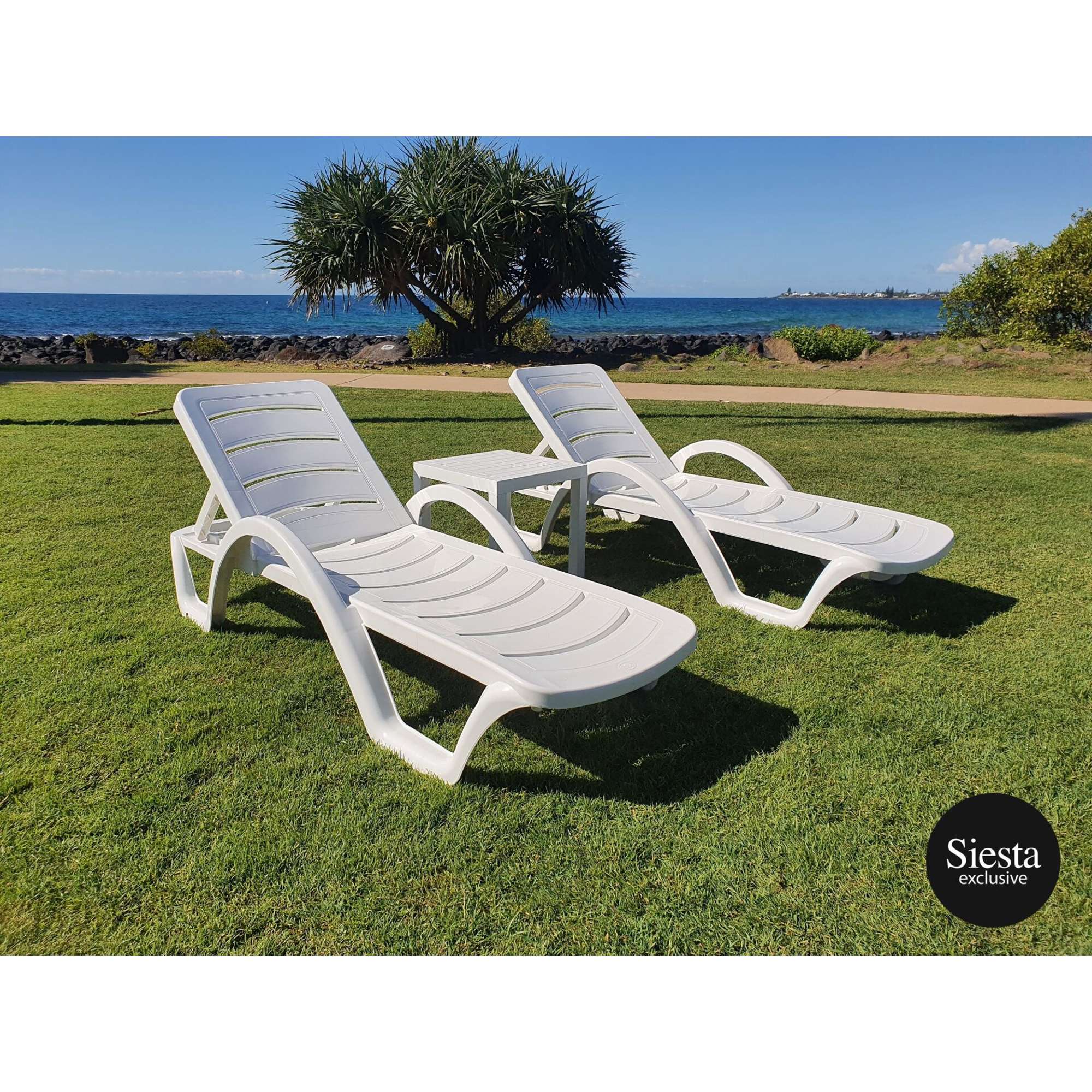 Modern, stackable, and comfortable – this durable lounger is a poolside favourite.
