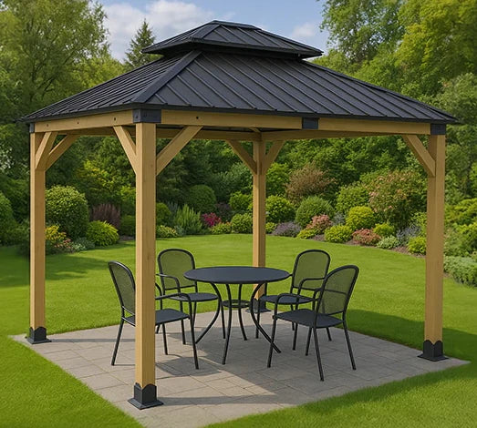 Maryborough 3.6m x 3m Timber & Steel Double Hip Roof Gazebo - Yardtopia