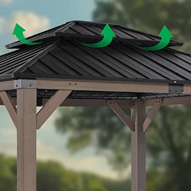 The advanced double roof design allows wind to pass through safely, enhancing its wind rating and stability. It also provides excellent ventilation, keeping the space cooler and more comfortable during hot weather.