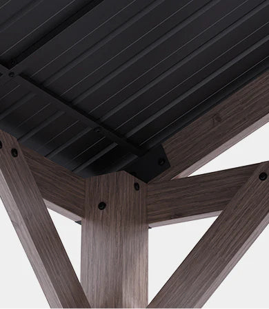 Reinforced with galvanised steel brackets and powder- coated anchor plates, this gazebo provides enhanced stability and strength.