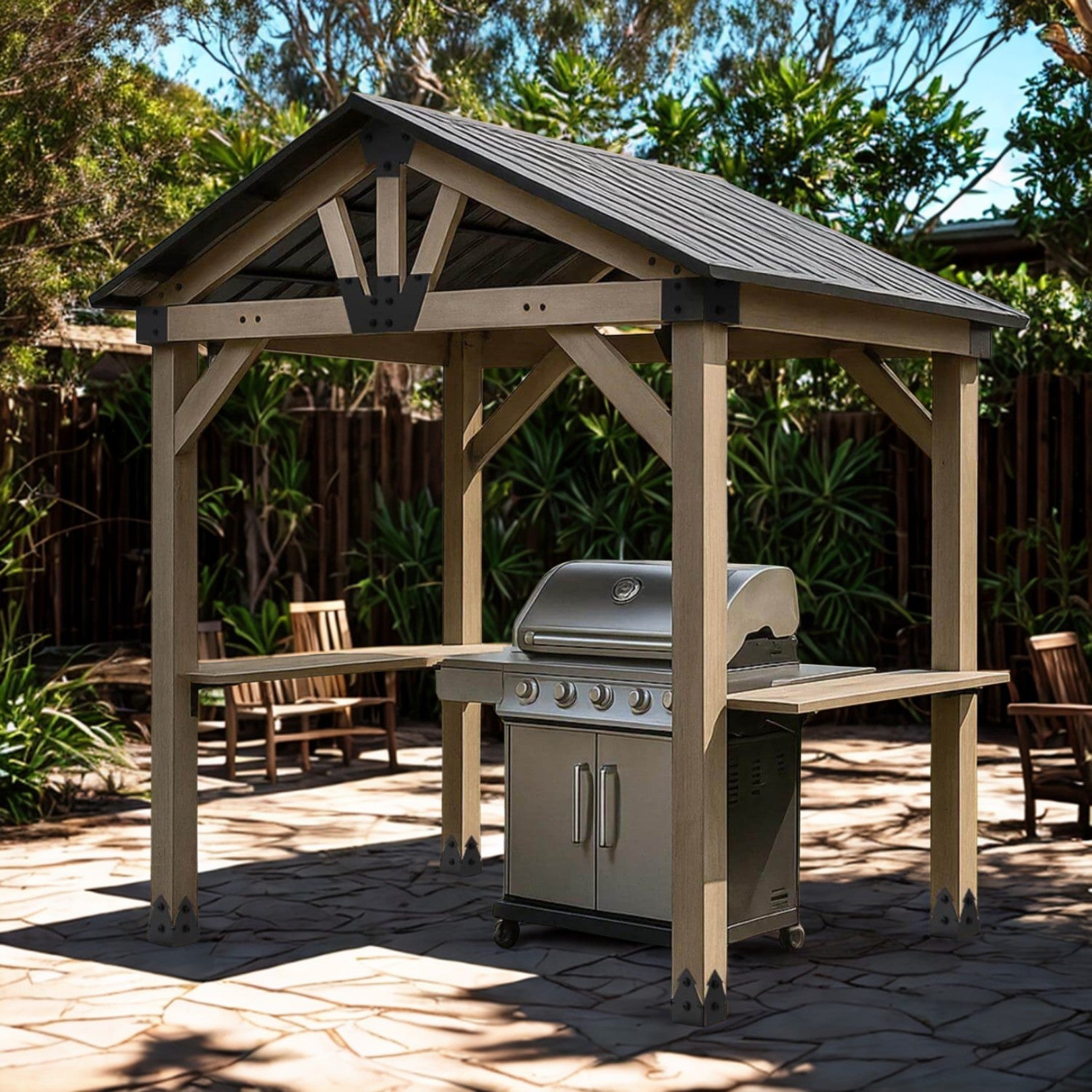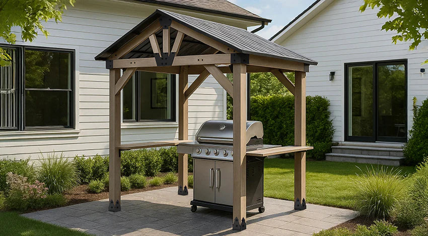 Oslo 2.4m x 1.8m BBQ/Grill Timber & Steel Gable Roof Gazebo by Yardtopia