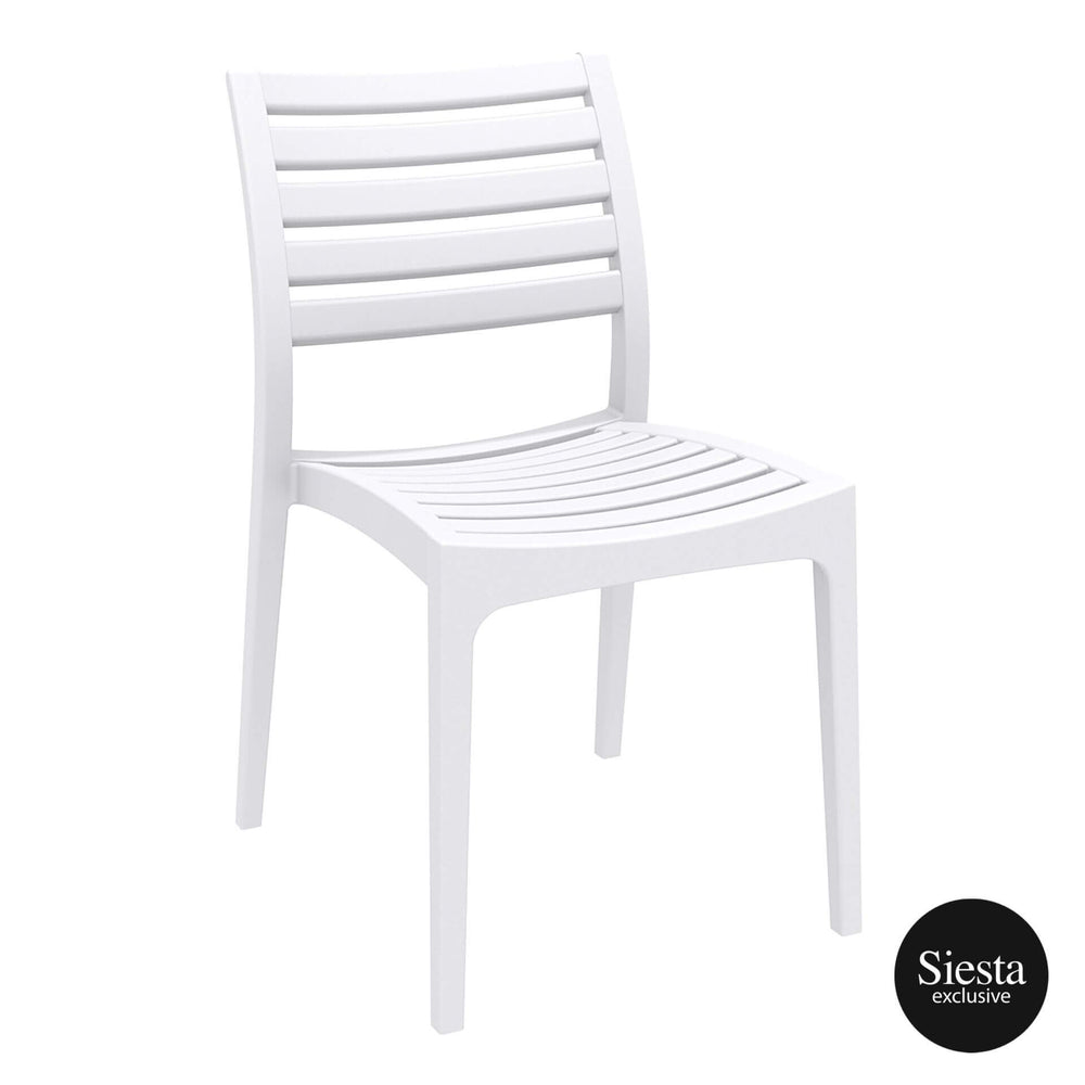 - The plastic is packed with UV stabiliser, so this chair will not fade or go brittle even in the sunniest weather conditions. Siesta’s Ares Chair is built to last in busy commercial venues, indoor or outdoor