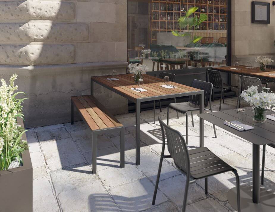 Enhance Your Cafe, Hotel, or Home with the Moonah Outdoor Dining Table: The Moonah Outdoor Dining Table, crafted from the finest Spotted Gum wood and supported by a sturdy steel frame, stands as a beacon of quality and elegance. Designed to enrich any outdoor setting, from bustling cafes and luxurious hotels to serene residential gardens, this table combines the rugged beauty of natural wood with the resilience of steel. It offers an inviting outdoor dining experience, making it an ideal choice for establishments aiming to provide a memorable ambience and homeowners seeking to create a private oasis.