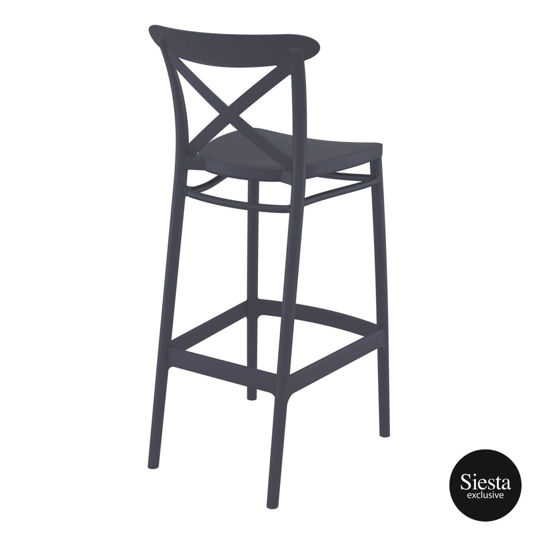 The Cross Barstools are also made with high-quality polypropylene reinforced with fibreglass. They are UV stabilized to prevent fading and have been CATAS tested for quality assurance. With overall dimensions of 1060h x 520d x 450w and a unit weight of 4.8kg, they have a SWL of 135kg and are suitable for indoor and outdoor commercial applications. They also come with a 5-year warranty.