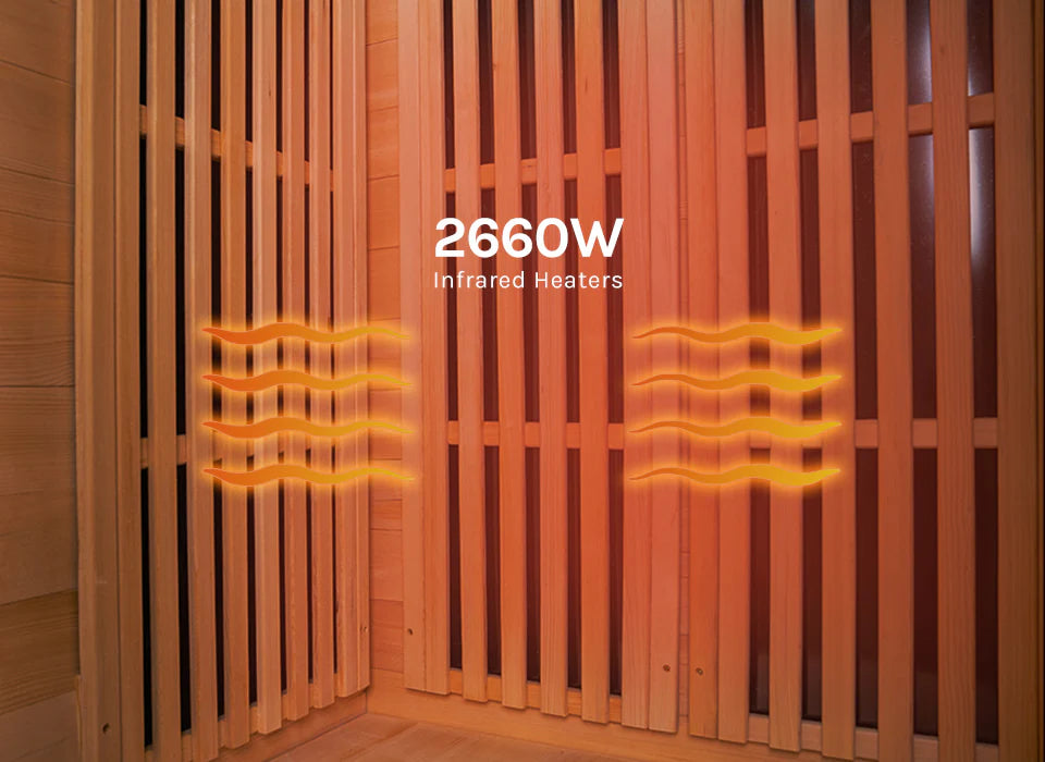 A 2660W carbon fibre infrared heating system creates fast, consistent heat with precise temperature control. The even heat distribution provides full-body warmth, better circulation and a more effective, personalised wellness experience.