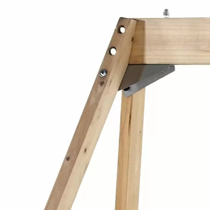 Metal swing attachments encircle the pole so no drilling is required, maintaining the strength and integrity of the timber. The sturdy frame also has wooden cross braces giving the swing extra stability.